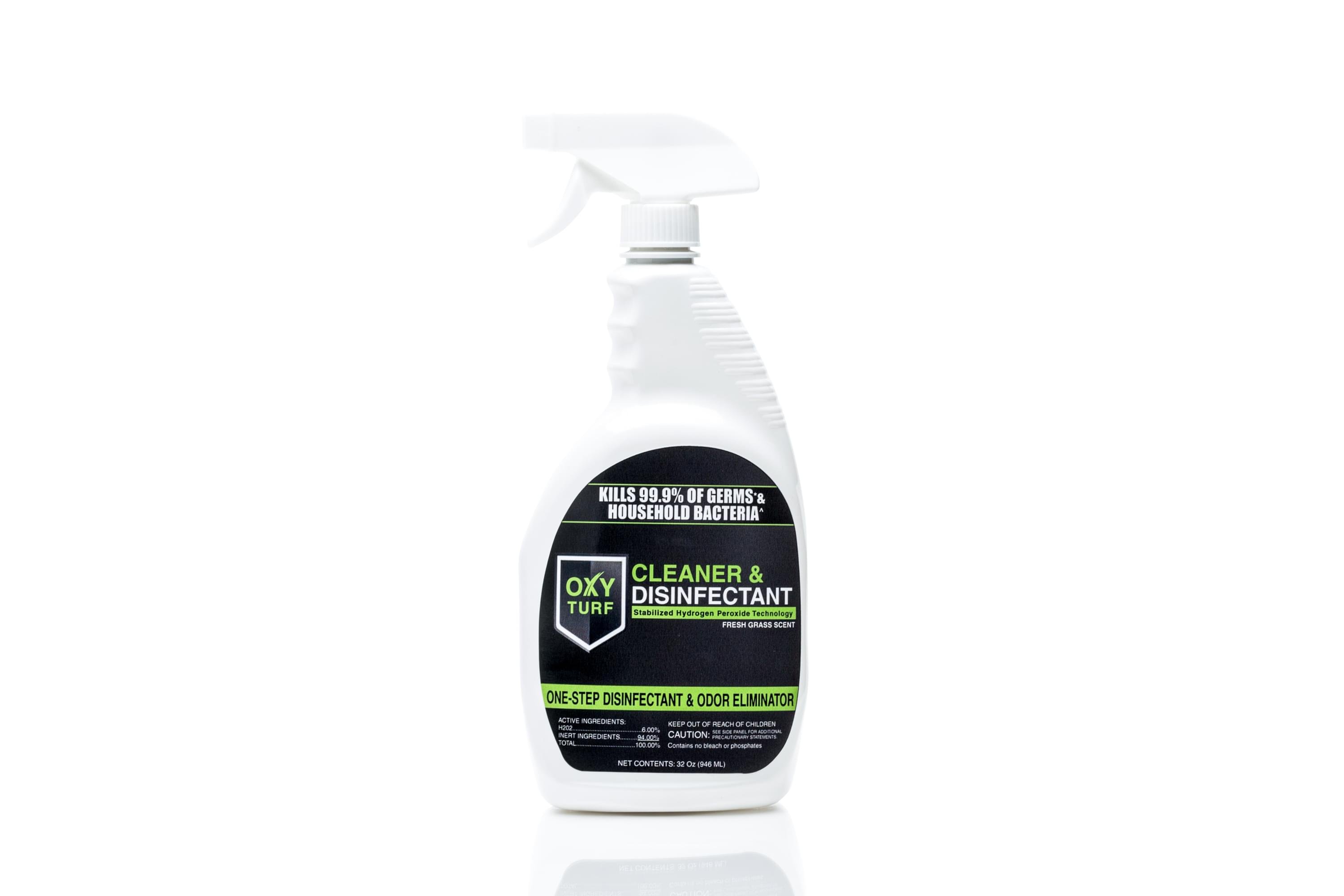 It is the only EPA-registered, one sep, ready-to-use, non-toxic, synthetic turf disinfectant & cleaner with hydrogen peroxide and the scent of fresh real grass! We partnered with renowned chemists to develop a healthy-concious, environmentally friendly product that is proven effective. OxyTurf's formula us a proprietary solution with patented stablized Hydrogen Peroxide Technology - H202.